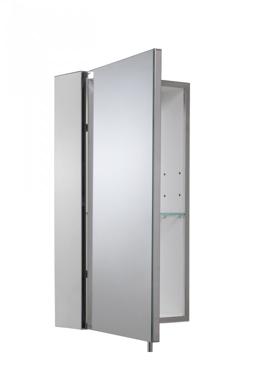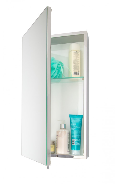 Perfect for busy bathrooms, this modern stainless steel cabinet provides plenty of storage for the whole family.