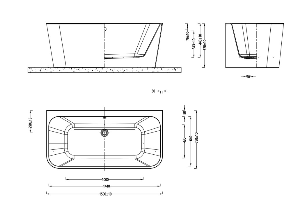 Ravine 1500 x 750 BTW freestanding style bath (waste not inc)